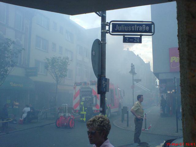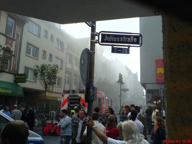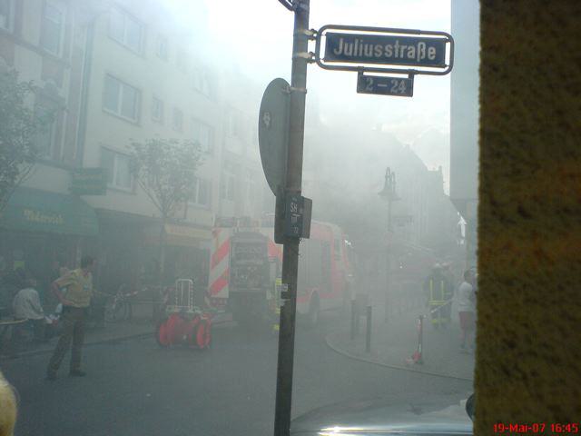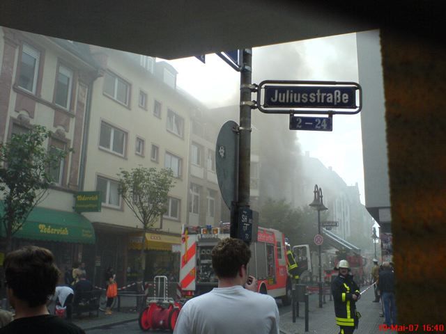 Ein Sachschaden von rund 200.000 Euro entstand bei einem Wohnungsbrand in der Leipziger Straße am Samstag, 19.05.2007. Als die ersten Einsatzkräfte, die von Passanten alarmiert worden waren, an der Brandstelle eintrafen, schlugen die Flammen bereits aus den Fenstern im ersten Stock des viergeschossigen Wohn- und Geschäftshauses.