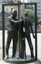 Vor der Johann-Wolfgang-Goethe-Universität an der Bockenheimer Warte in Frankfurt-Bockenheim steht seit 1986 die Bronze "Mann in Drehtür" von Waldemar Otto. Die beiden männlichen Skulturen werden durch eine Messingplatte von einander getrennt, die jede Kommunikation verhindert. So stehen hier zwei überlebensgroße Bronzefiguren dicht beieinander und begegnen sich doch nicht wirklich.