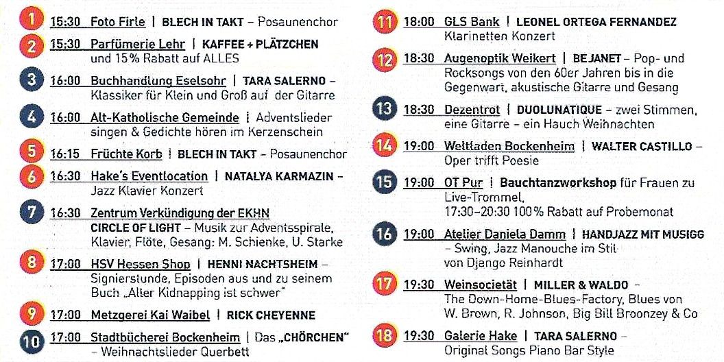BOCKENHEIMER TREFF: 2., 11., 16., 18.12.